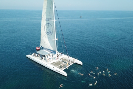 Navegación a vela hacia la isla Tabarca o por el Cabo de Huertas. Excursión de día completo con comida casera servida a bordo, paseo de tres horas por la costa con baño en alta mar, o contemplar la puesta del sol desde la bahía de Alicante, tu eliges la mejor experiencia a compartir con nosotros. Celebramos además tus eventos privados, despedidas, grupos de empresa, porque el catamaran es el soporte ideal!