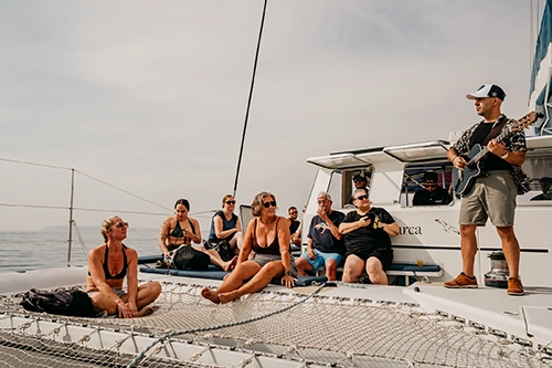 Disfruta de una increíble velada en catamarán con música en directo en un entorno ideal para relajarse, al final del día...