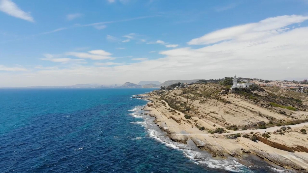 Descubre Alicante desde el mar: vista al castillo de Santa Bárbara, la playa del Postiguet hasta la Albufereta con un baño corto y resfrescante.