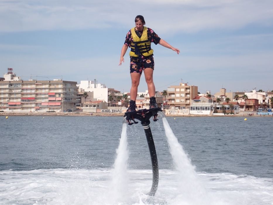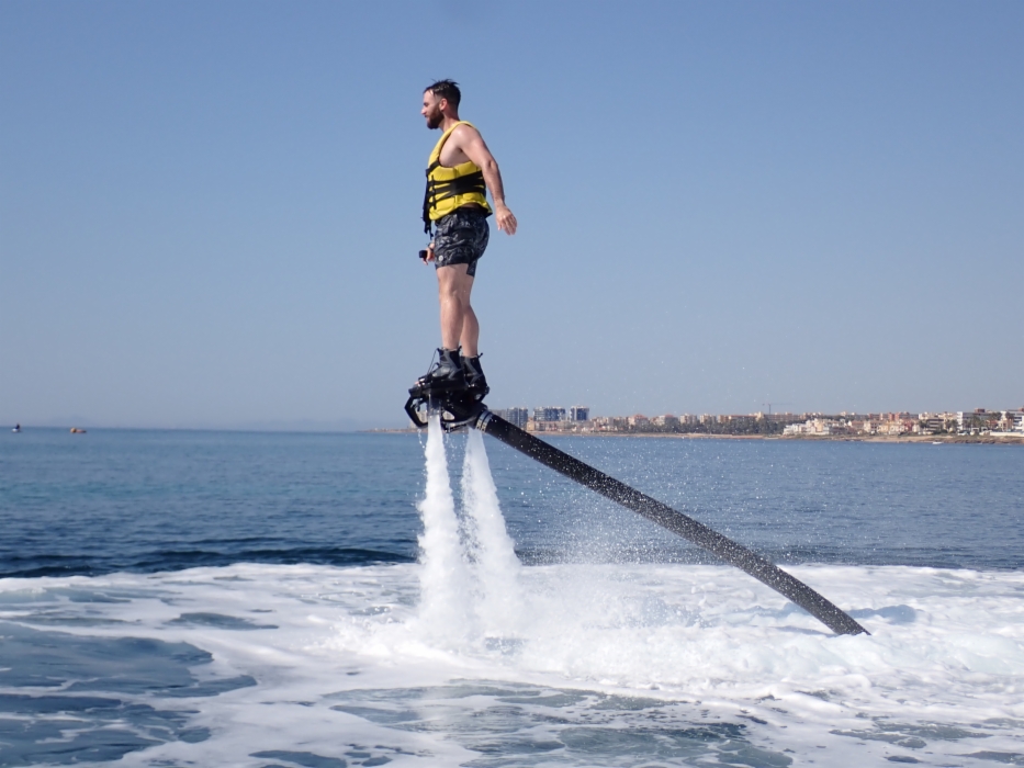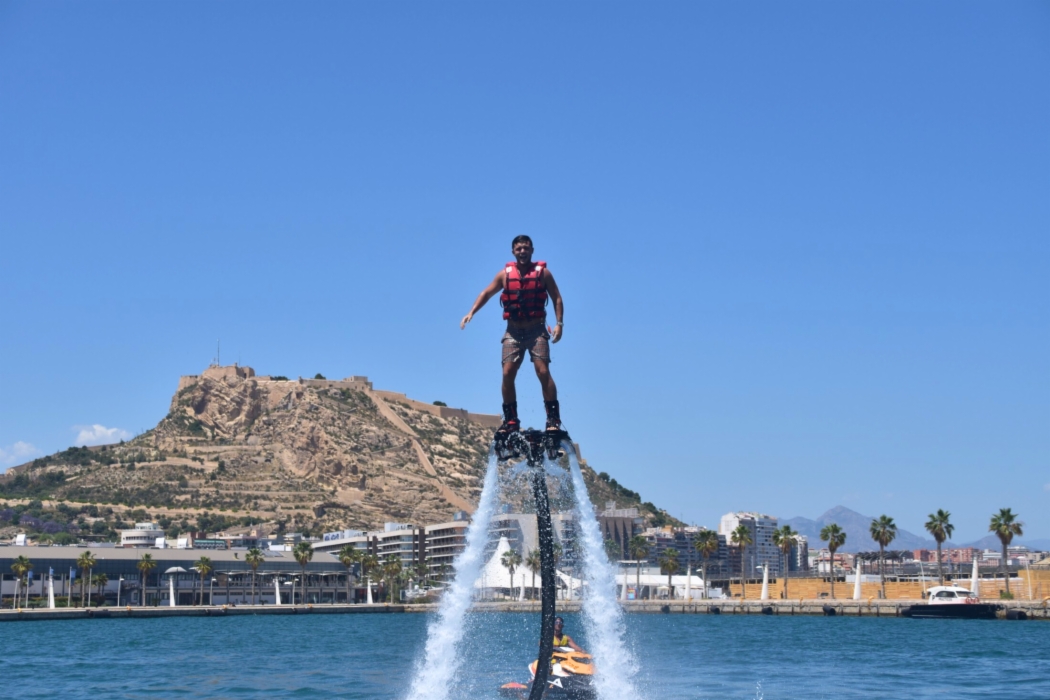 Steigen Sie von Alicante oder Torrevieja aus für eine kurze Fahrt in ein Boot, bis Sie das Fluggebiet erreichen. Dort erklärt Ihnen ein Instruktor die Verwendung des Flyboards und führt Sie durch, bis Sie sich wohl und sicher fühlen, um mit dem Erlebnis zu beginnen. Dank der Wassertriebwerke können Sie fliegen und akrobatische Kunststücke vorführen und dabei die beeindruckende Aussicht vom Meer aus genießen.